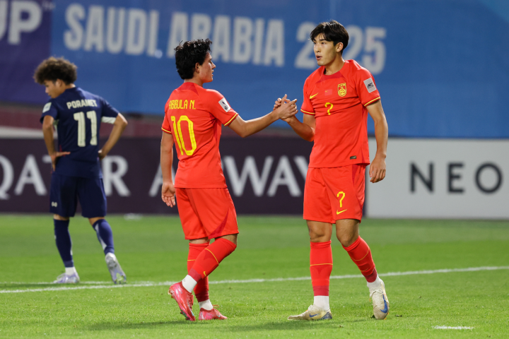 在同时开打的另外一场比赛里,已经提前出局的中国队彻底卸下了包袱,面对本组实力最弱的泰国队,他们终于找到了赢球的感觉。凭借着布尼亚明和江志钦下半场的两粒进球,中国队以2-0战胜了泰国队,拿到了本届U17亚洲杯的首胜,终结了此前各项赛事的五连败,避免了小组垫底的尴尬。